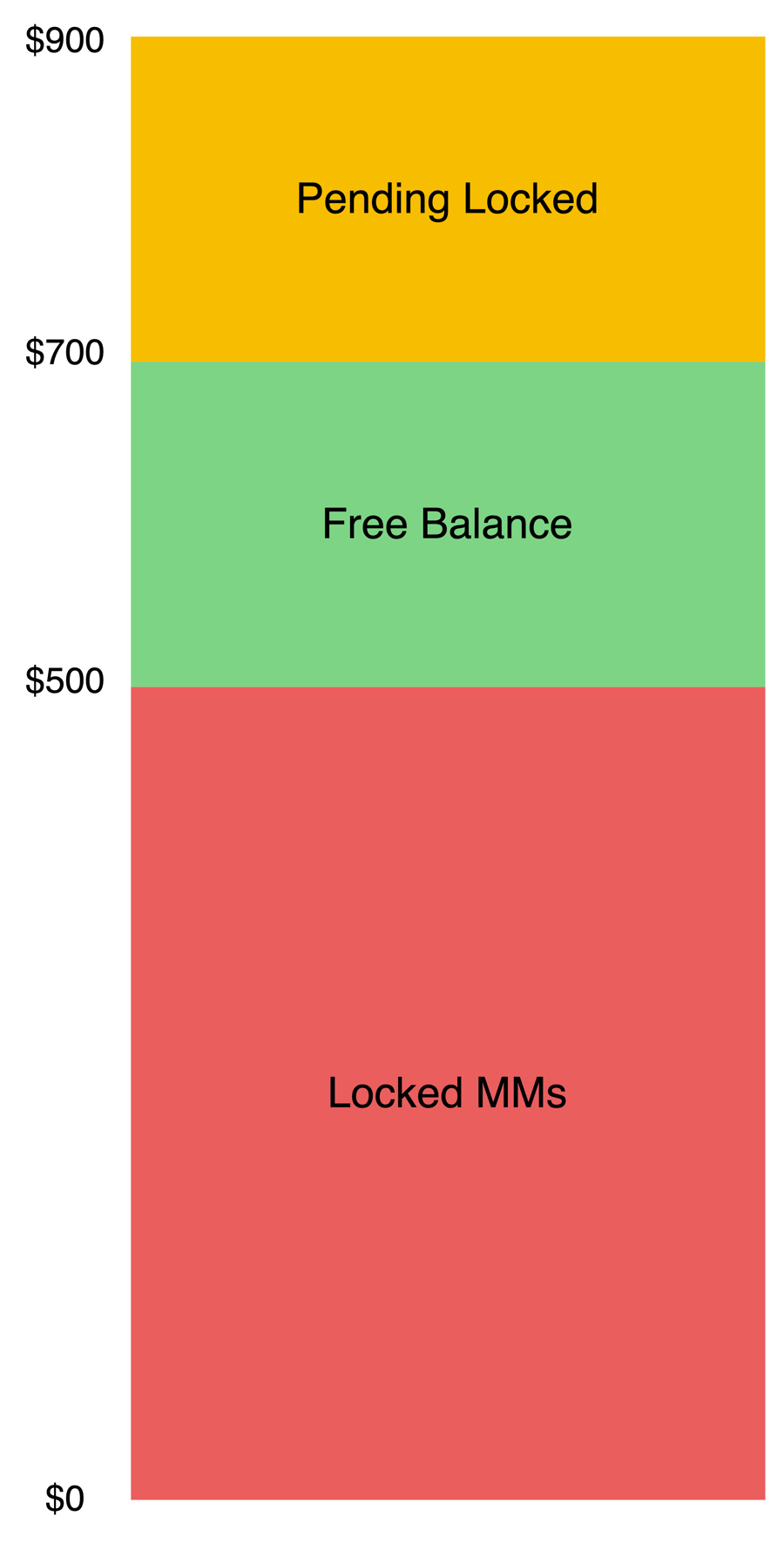 User positions are all considered to be cross, meaning that in the above picture, values can be the sum of the equivalent values in 4 different positions. Pending locked values are from user quotes that have not been opened yet.